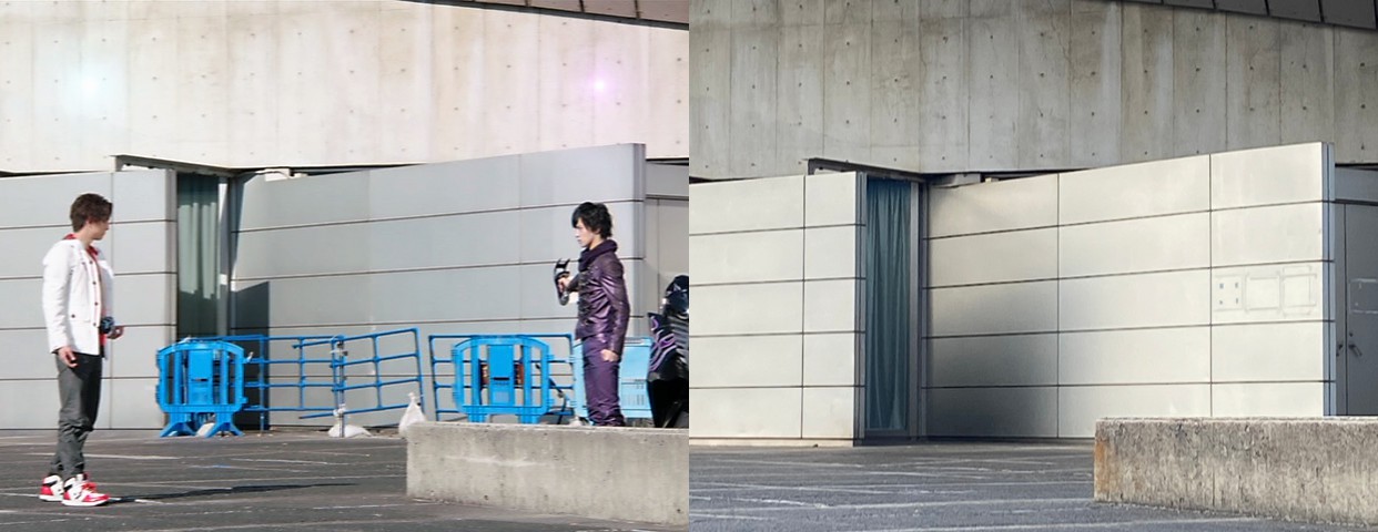 | マッハに変身する剛と魔進チェイサーに変身するチェイス |