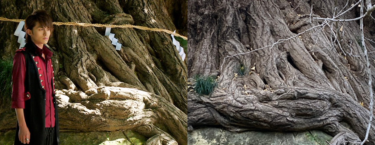 鎮守の森の御神木の側で佇む駆紋