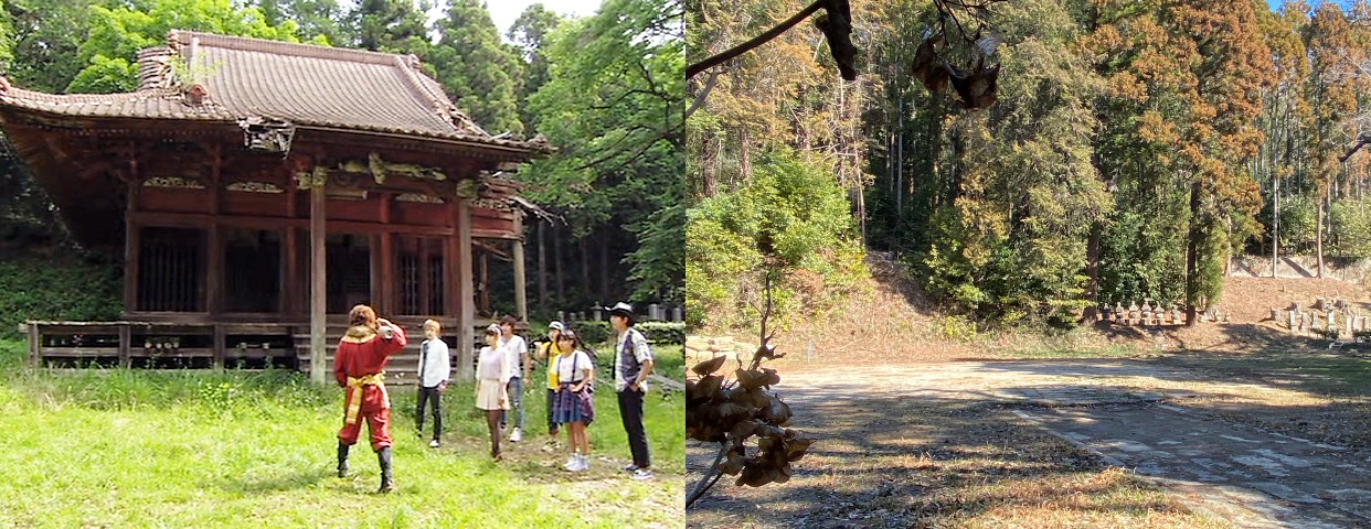 ニンニン 19 第19話 探せ!天空のオトモ忍 獅子王からの情報で獅子寺に着いた松尾たち 加藤たちの元にやって来た獅子王 ヌエの出現でニンニンジャーに変身したキンジたち 茨城県石岡市太田 善光寺本堂跡地 2025.3