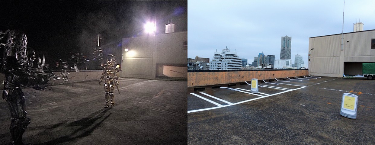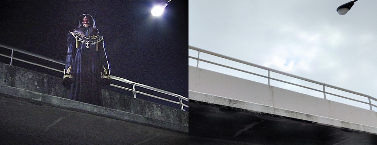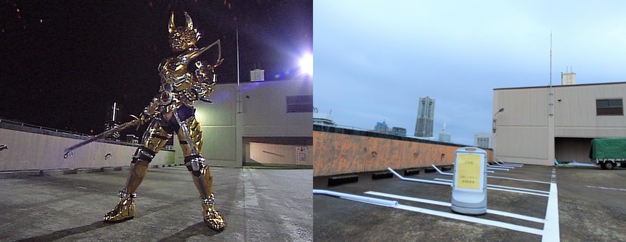 牙狼MAKAI 01 第1話 火花 牙狼の鎧を召還・装着する鋼牙 シガレインに立ち向かう牙狼 シガレインを切り裂いた牙狼 鋼牙を見下ろす布道シグマ 神奈川県横浜市中区長者町9-176 タイムズ・パーク600屋上 2024.11